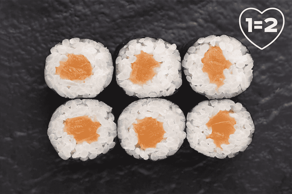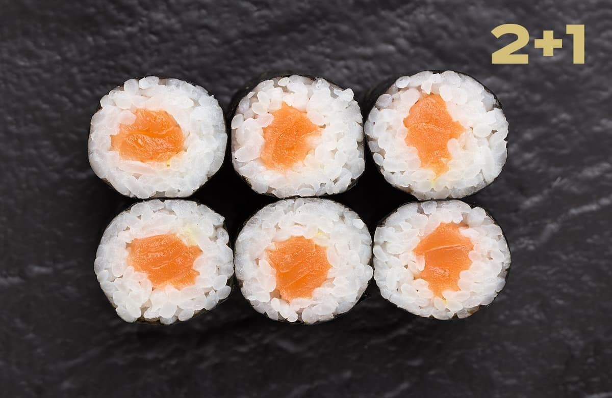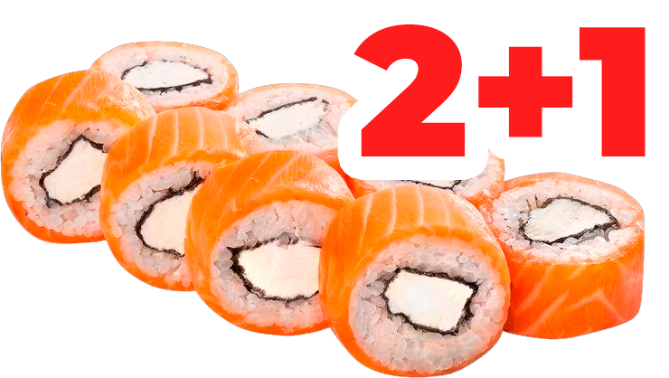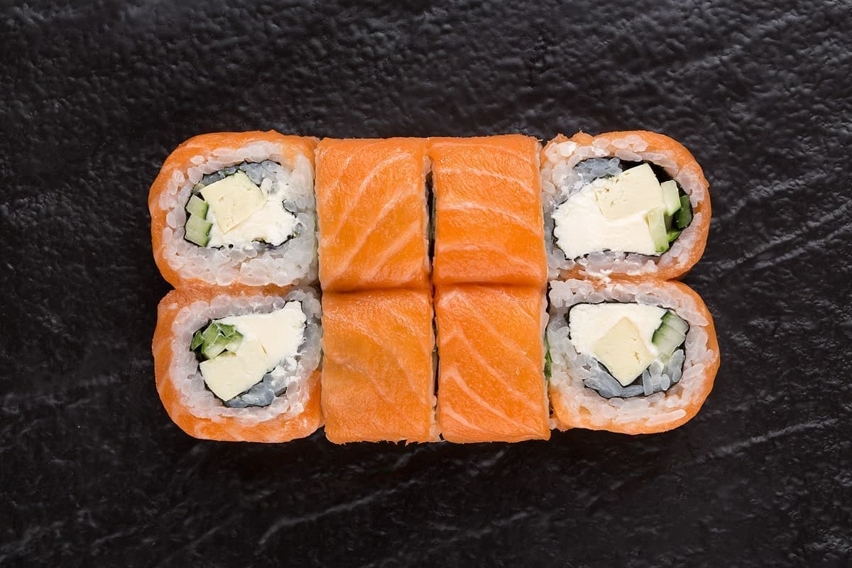 Філадельфія з лососем / Каліфорнія у ікрі з крабом / Філадельфія унагі / Каліфорнія з гострим лососем / рол Футомакі / Каліфорнія з копченним лососем
