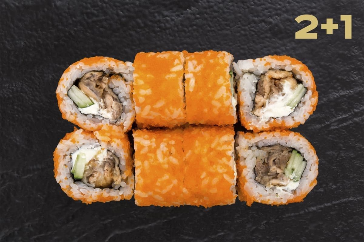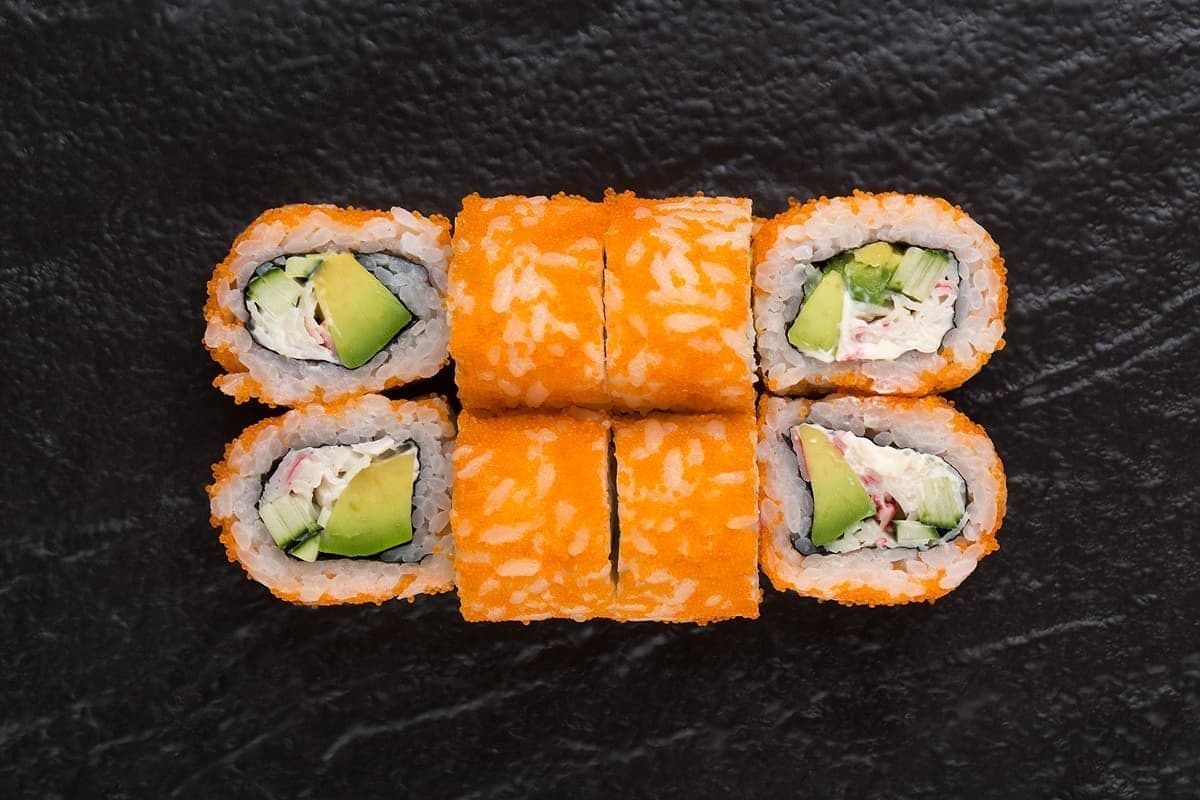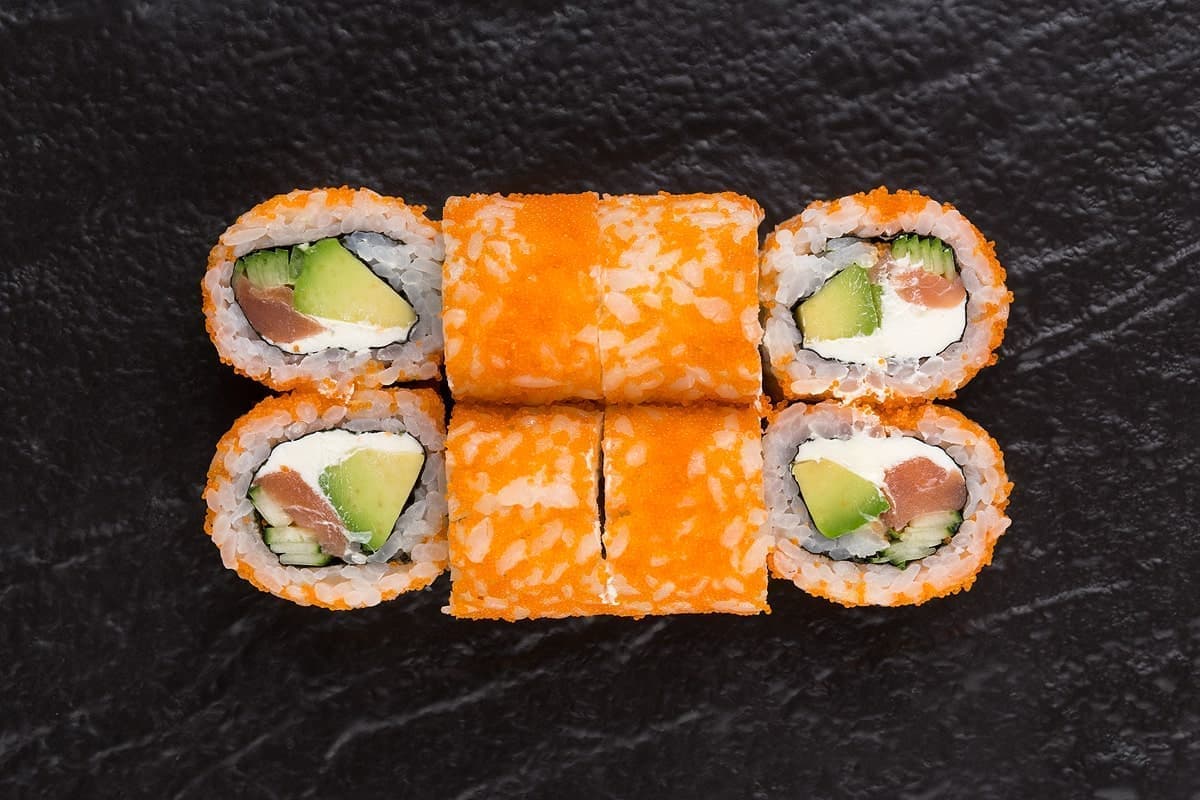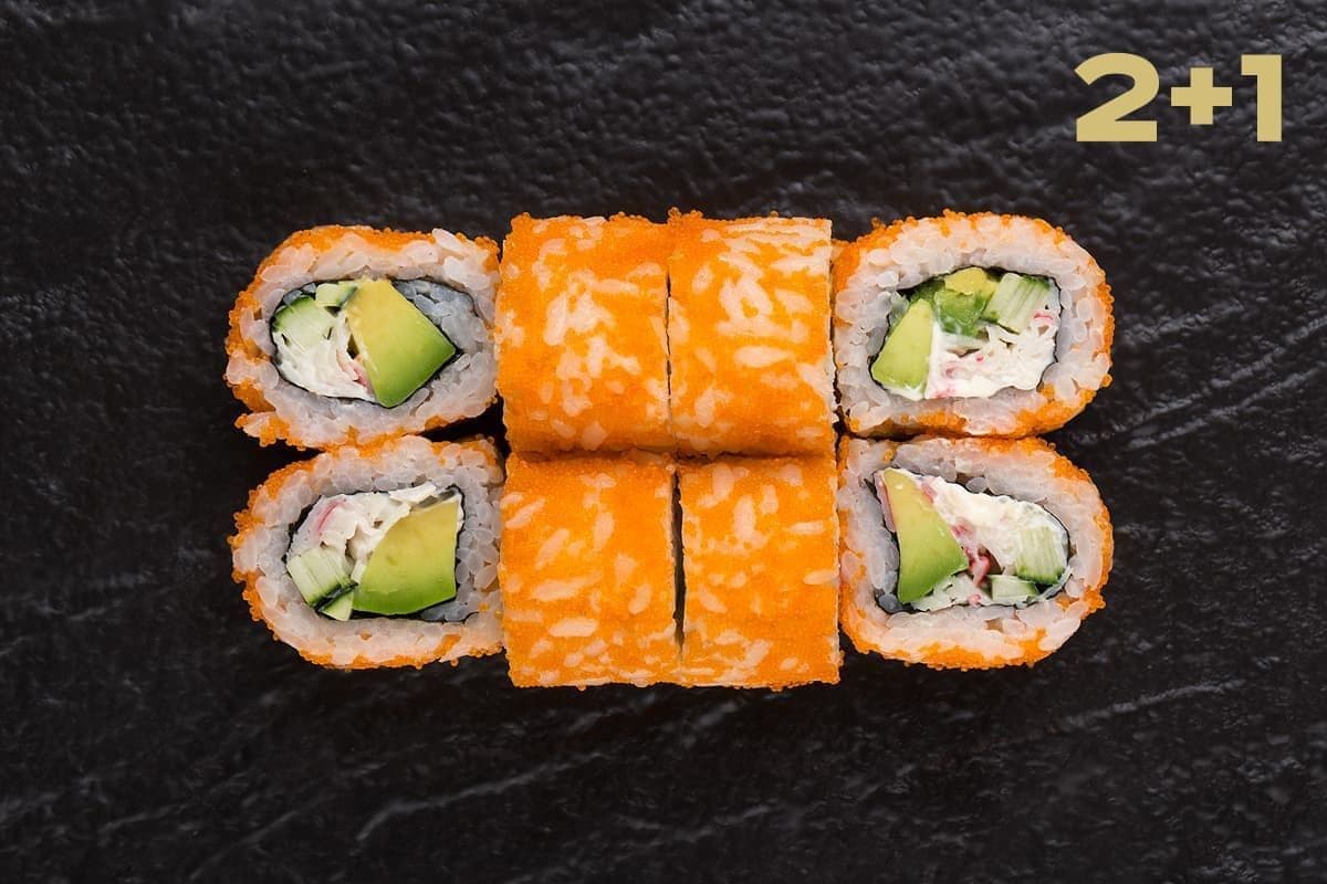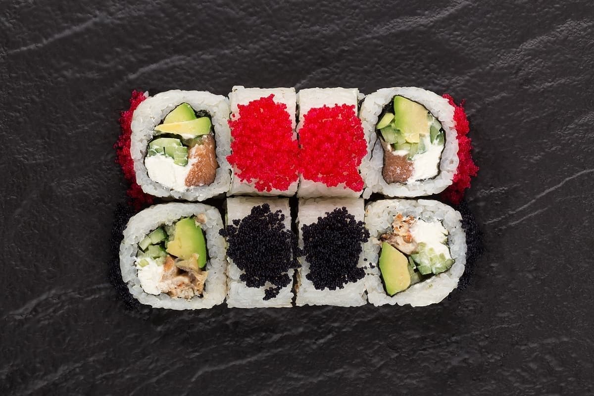 рол Авокадо з вугрем / рол Норімакі / рол Філадельфія у ікрі Делюкс / Каліфорнія з сиром