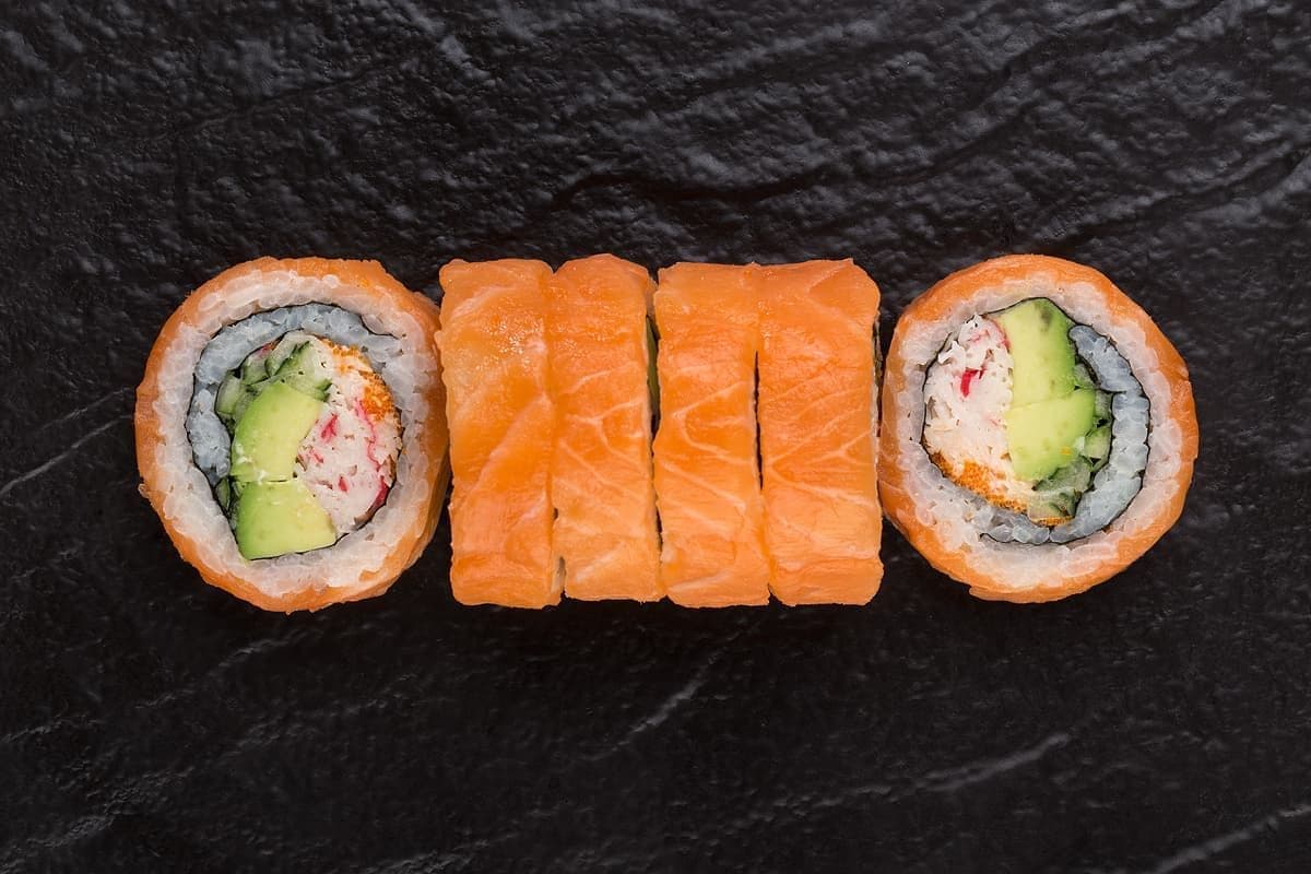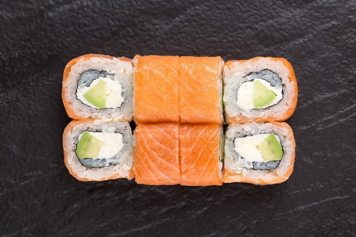 суші-сир / авокадо / ікра корюшки / копчений лосось / огірок