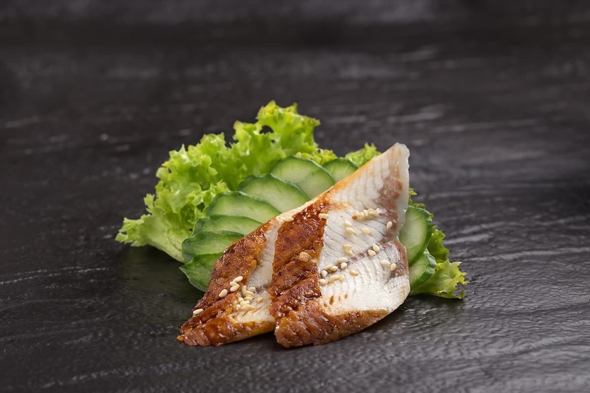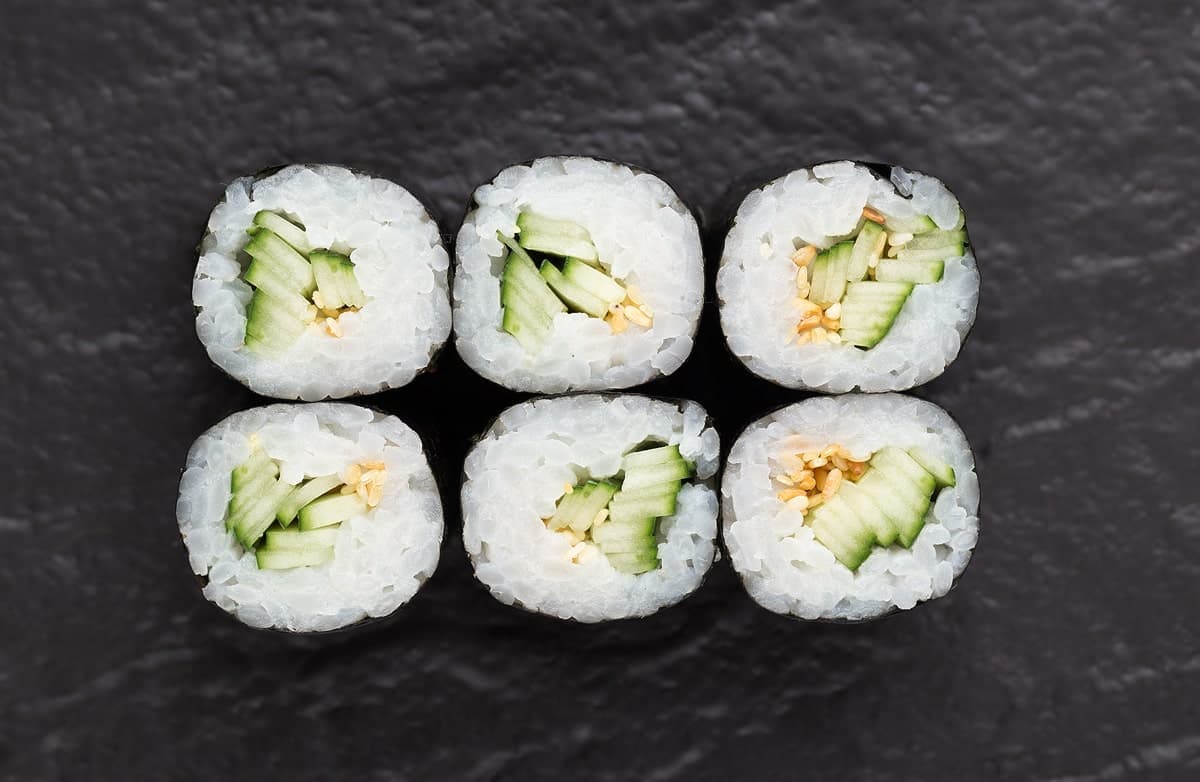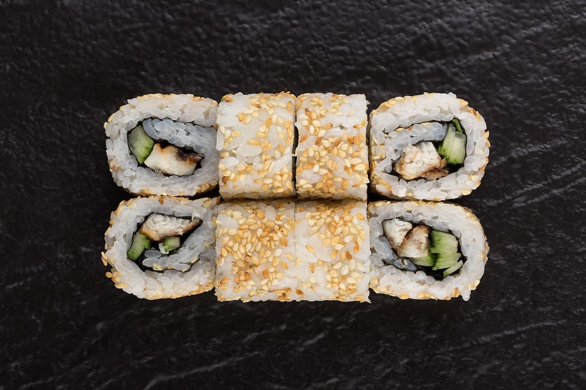 огірок / рис / водорості норі / насіння кунжуту / соус для вугря / вугор
