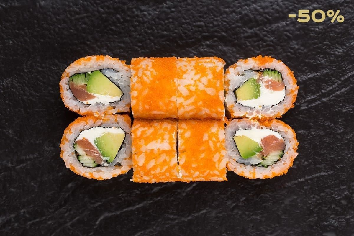 рол Червоне руно / Філадельфія у ікрі / Філадельфія з лососем і авокадо / Каліфорнія з гострим лососем / рол ЯпонаХата / півролу Сяке авокадо макі