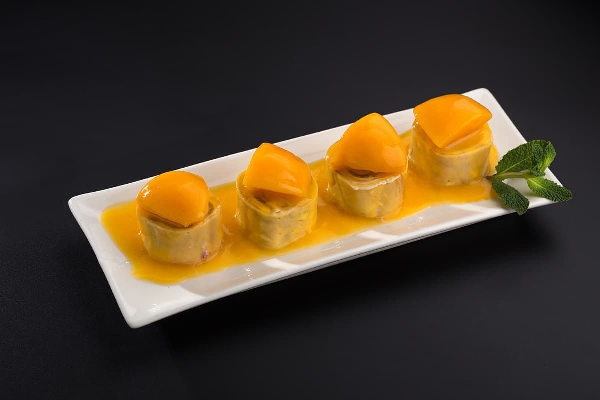 ікра корюшки / чорний кунжут / Креветка тепан / суші-сир / листя салату / борошно темпура / соус манговий / кранч