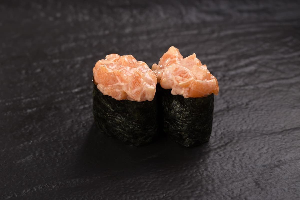 ікра корюшки / гострий майонез / суші-сир / огірок / борошно / лосось смажений