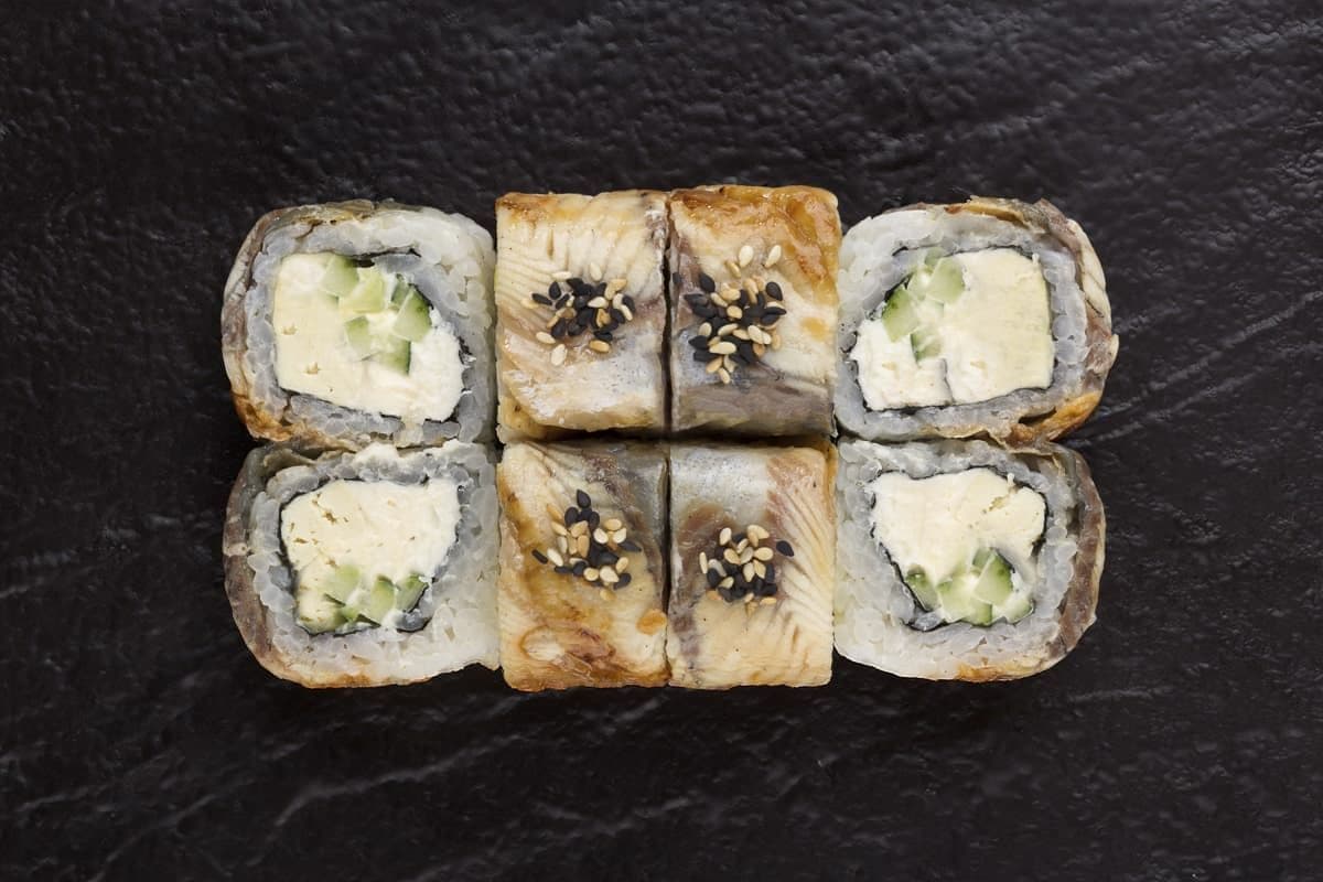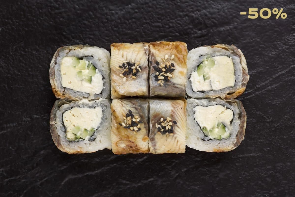 суші-сир / вершковий сир / чорний кунжут / огірок / соус для вугря / тофу / вугор