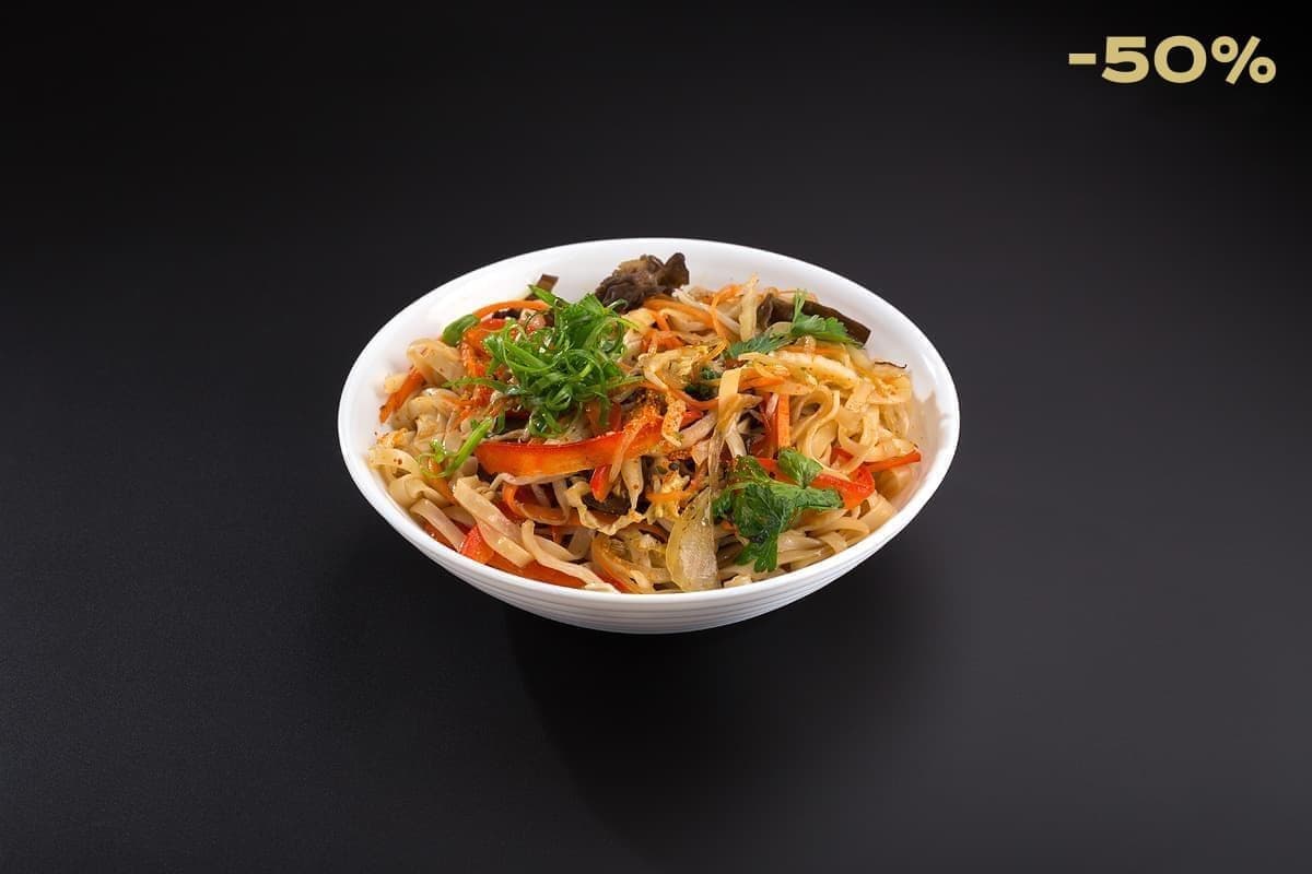 локшина удон / овочевий мікс / спеції / устричний соус / зелена цибуля
