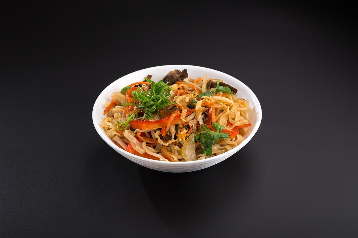 овочевий мікс / рисова локшина / спеції / устричний соус / зелена цибуля
