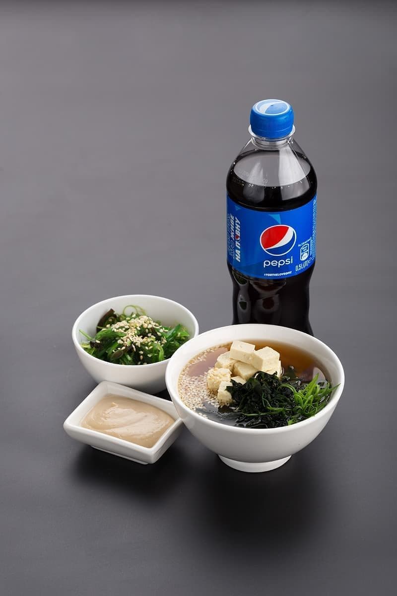місо бульйон / тофу / зелена цибуля / водорості вакаме / насіння кунжуту